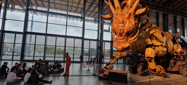 Le jeudi 7 novembre, les 6è4 et 6è1 ont été visiter laHalle aux Machines avec leurs professeurs Mmes Marquez, Touzan, Berthelot et Pradier, dans le cadre du projet pluridisciplinaire autour du Dragon.