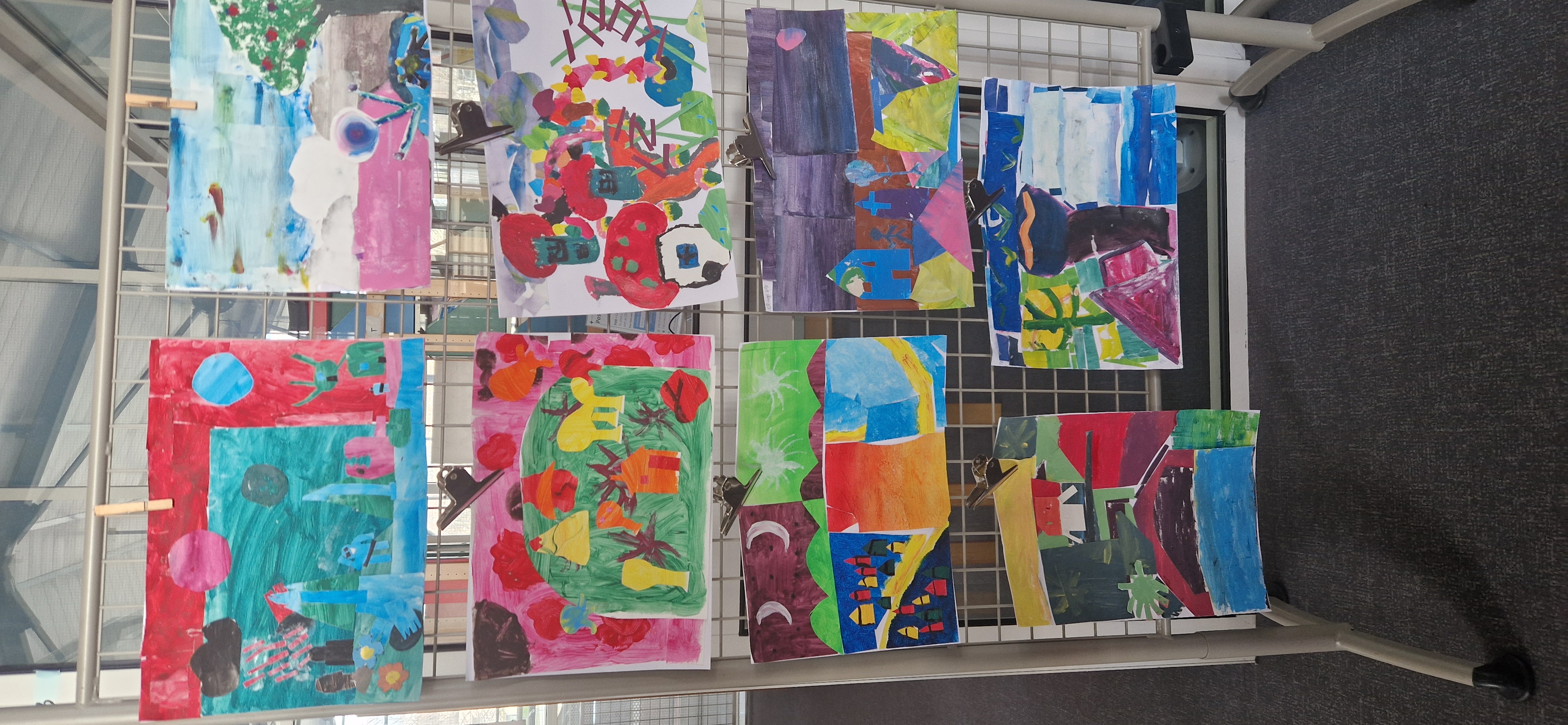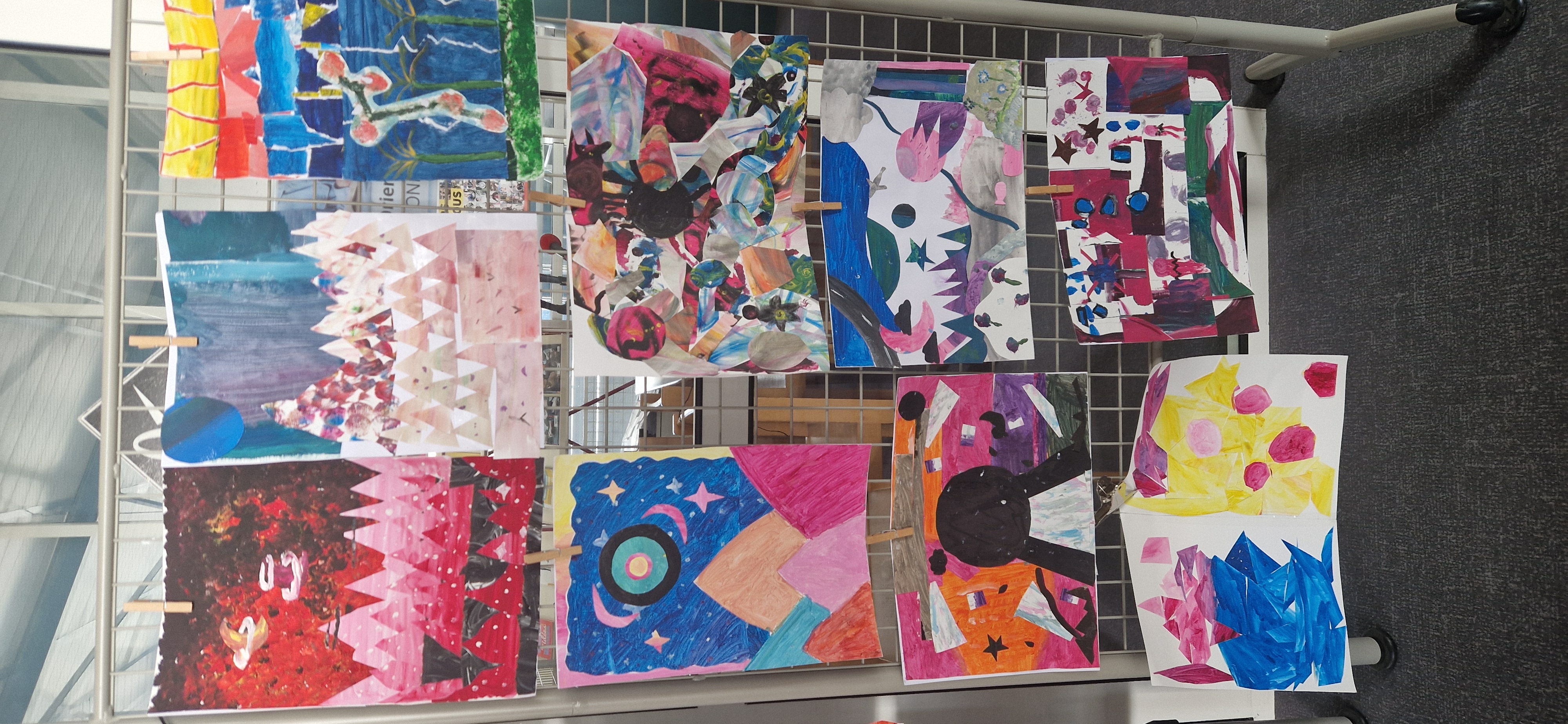 En expérimentant de nombreuses techniques de peinture, les élèves de 6ᵉ représentent un paysage étrange et coloré